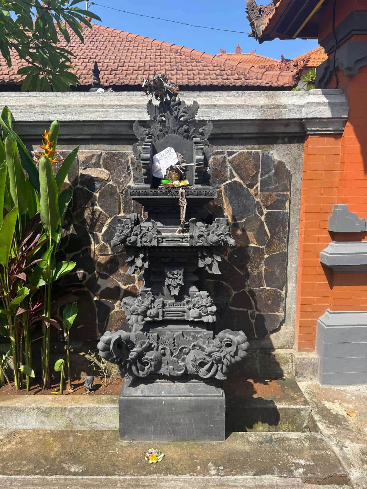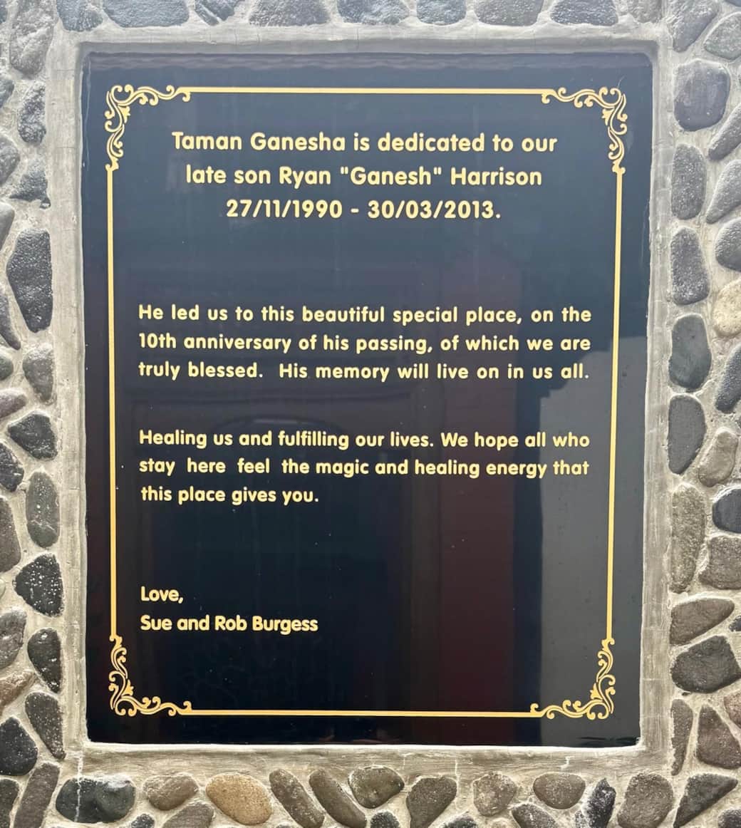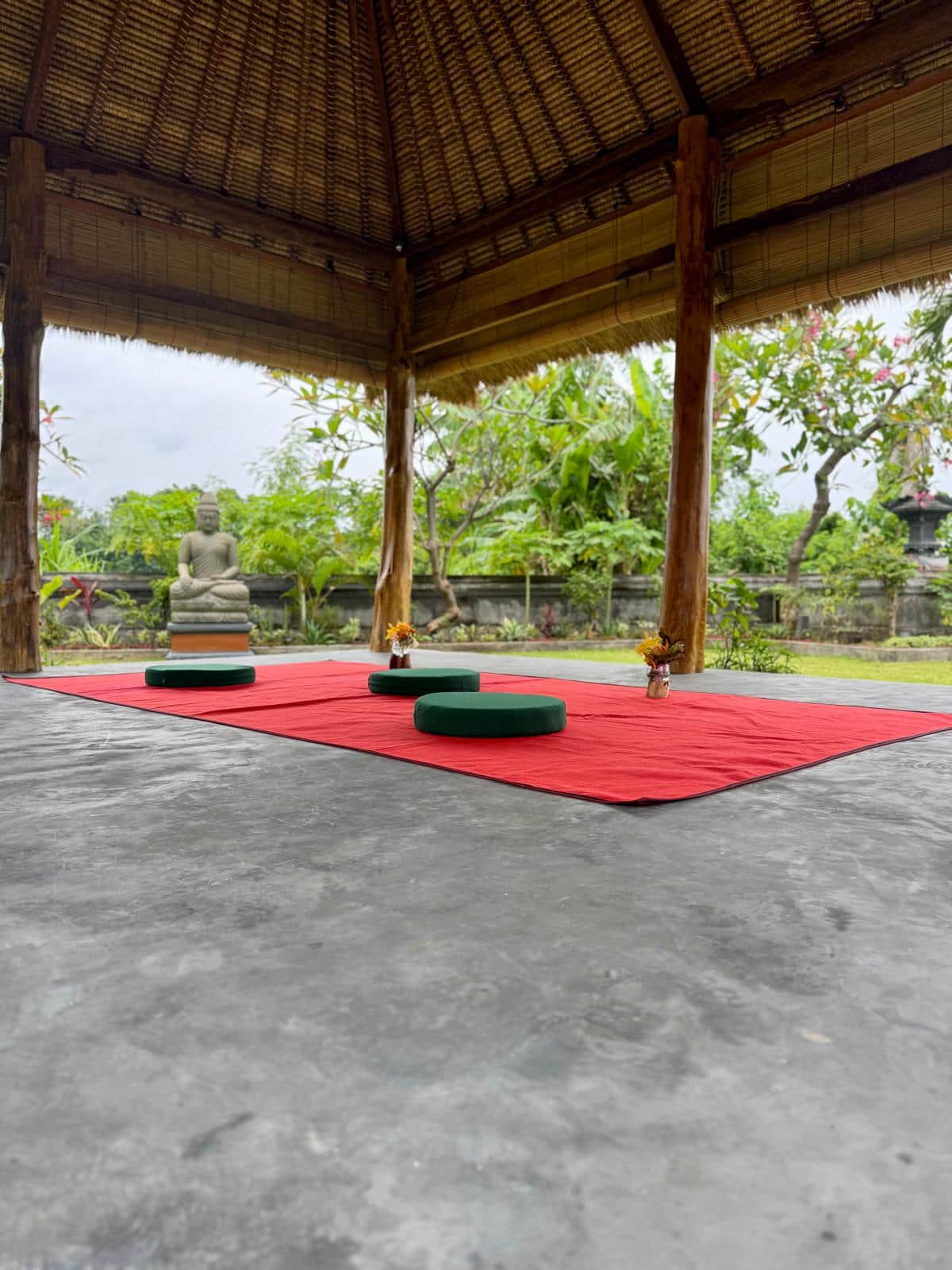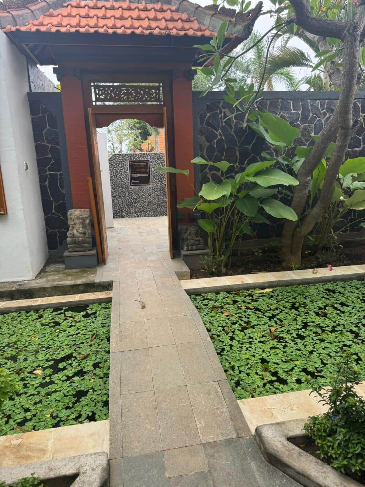The Shala Garden is a private area located within the property, featuring a large water fountain and several ceremonial statues that creates a peaceful setting.